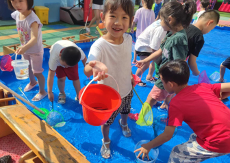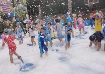 第四周“酷爽一夏,泡沫世界”的泡沫大战。“下雪啦、下雪啦”,活动中,青春洋溢的老师,活泼可爱的孩子们,到处都充满着笑声。这个气温下最幸福的事,就是倘佯在泡沫的海洋中简单纯粹、纯净美好! 参与是一种快乐,创造是一种享受,合作是一种幸福,“泡沫之夏”活动在一片笑声中完美收场。