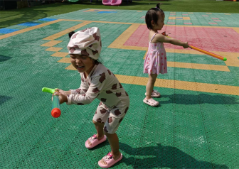 第一周“嗨翻一夏,“水”与争锋”的水枪大战,一说到玩水,孩子们马上“沸腾”起来。抓住这一契机,放开对孩子们的束缚,决定和水“亲密接触”一番,就这样一场别开生面的水枪大战开始了。孩子们身着各式各样的泳装,拿着各种样式的水枪……犹如一个个跳动的“彩色音符”。水枪大战开始啦!孩子们有的追、有的跑、有的射水、有的躲。大家你追我赶,玩得不亦乐乎。一支支水枪火力全开,不同班级的小朋友们互相配合互相帮助,一起“团结对敌”,无形中培养了孩们合作互助的精神和交友能力,小朋友们在游戏的过程中,也感受到了户外活动的魅力和乐趣所在。